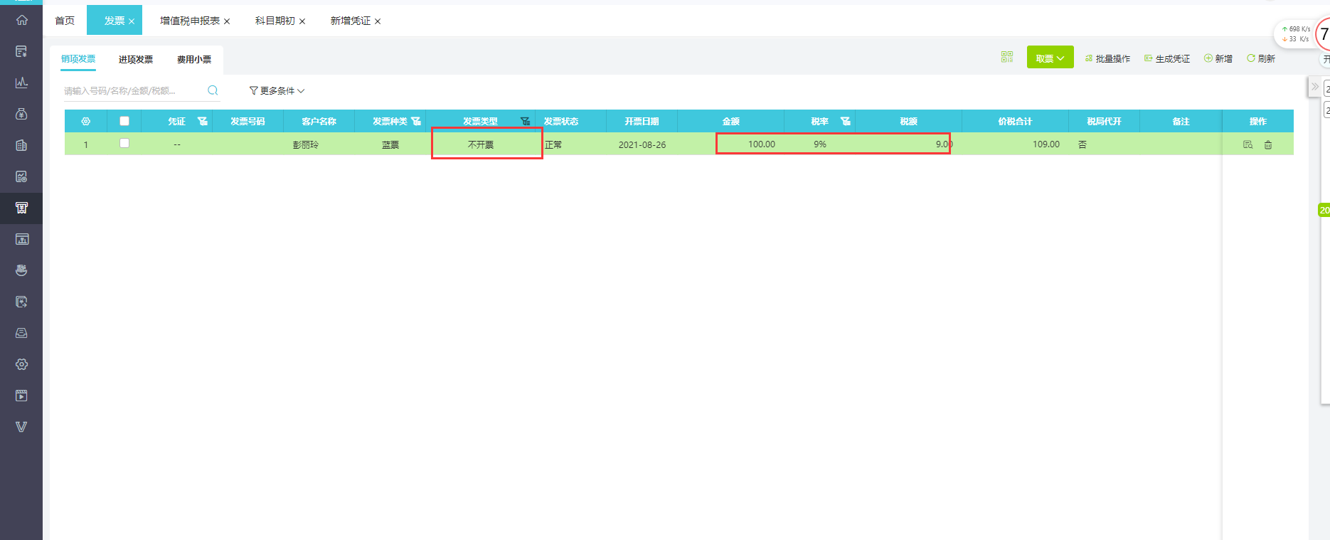 1、增值税申报表附表一取数新增票种